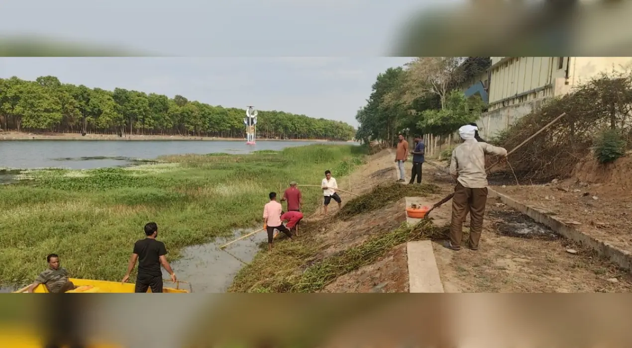 अमरकंटक में “जल गंगा संवर्धन अभियान” के अंतर्गत रामघाट पर चलाया जा रहा स्वच्छता अभियान ।