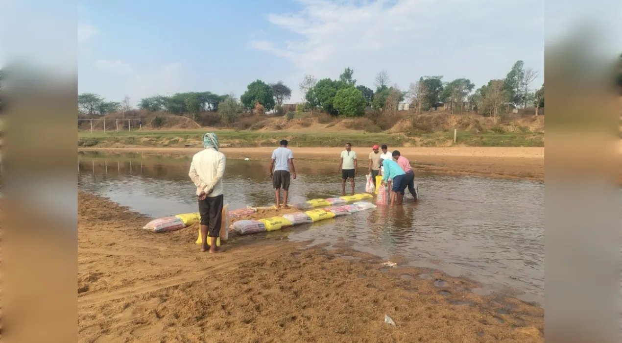 ग्रामीणो तथा पशु पक्षियों को जल की उपलब्धता के लिए पसला ग्राम पंचायत द्वारा किया जा रहा बोरी बंधान