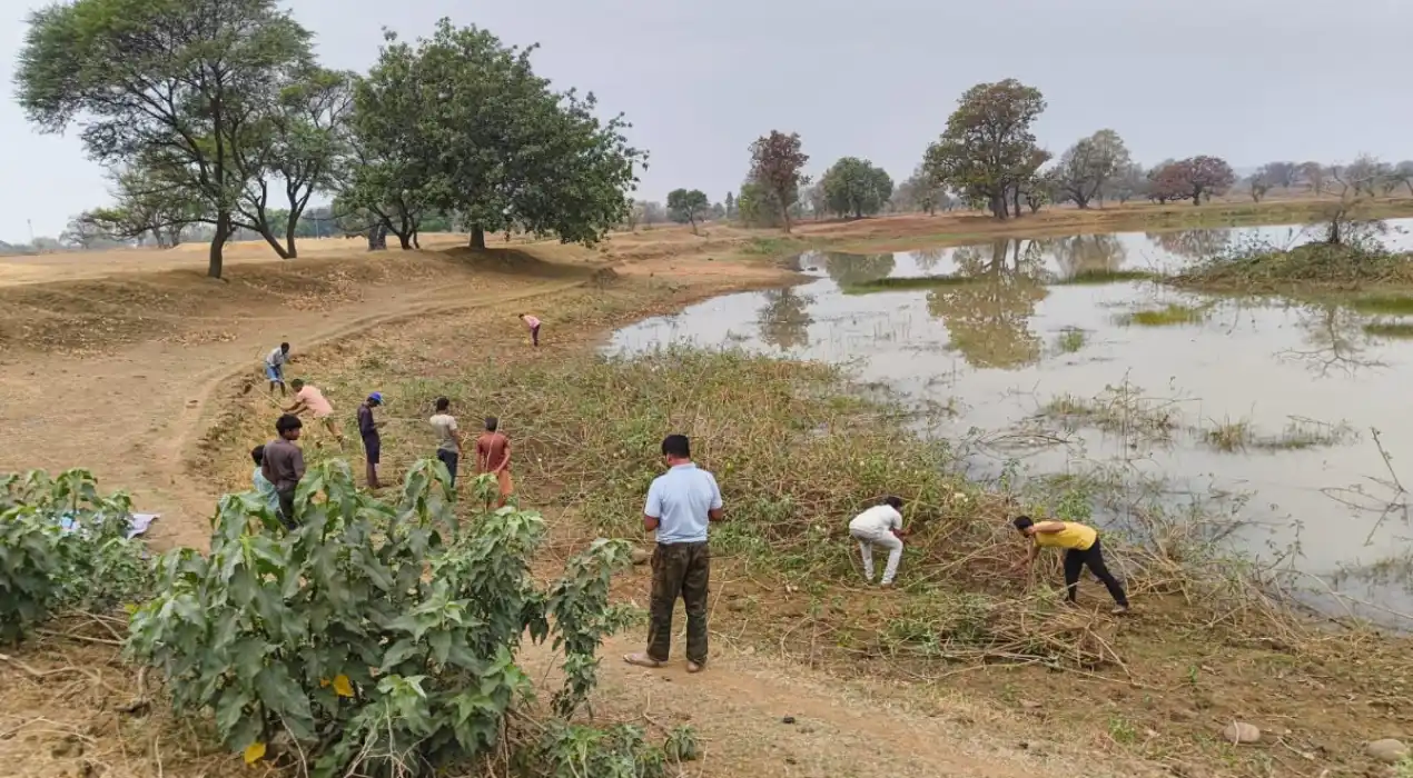 ग्रामीणों ने श्रमदान कर की तालाब की साफ- सफाई