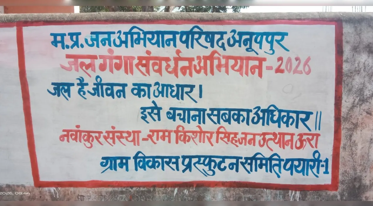 जल गंगा संवर्धन अभियान-2026’’ अनूपपुर जिले में दीवार लेखन के माध्यम से दिया जा रहा है जल संरक्षण का संदेश