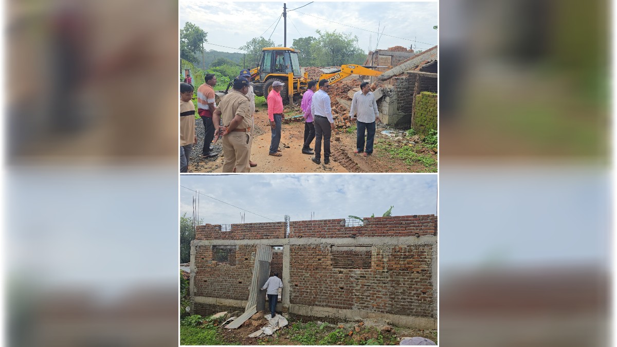 अमरकंटक के जमुना दादर में अतिक्रमण हटाने की हुई कार्यवाही,जेसीबी से गिराया गया अवैध मकान