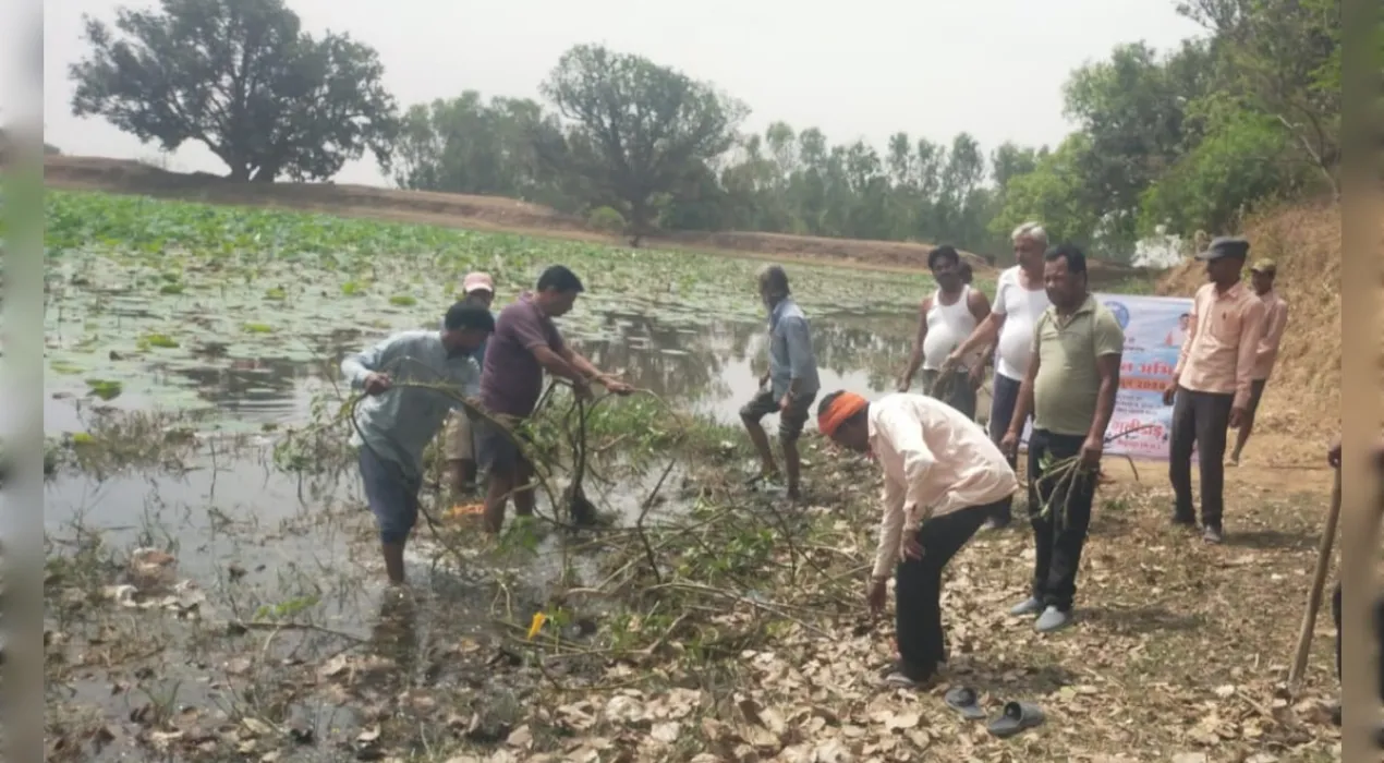 गुलीडांड ग्राम के तालाब का श्रमदान कर ग्रामीणों द्वारा की गई साफ- सफाई