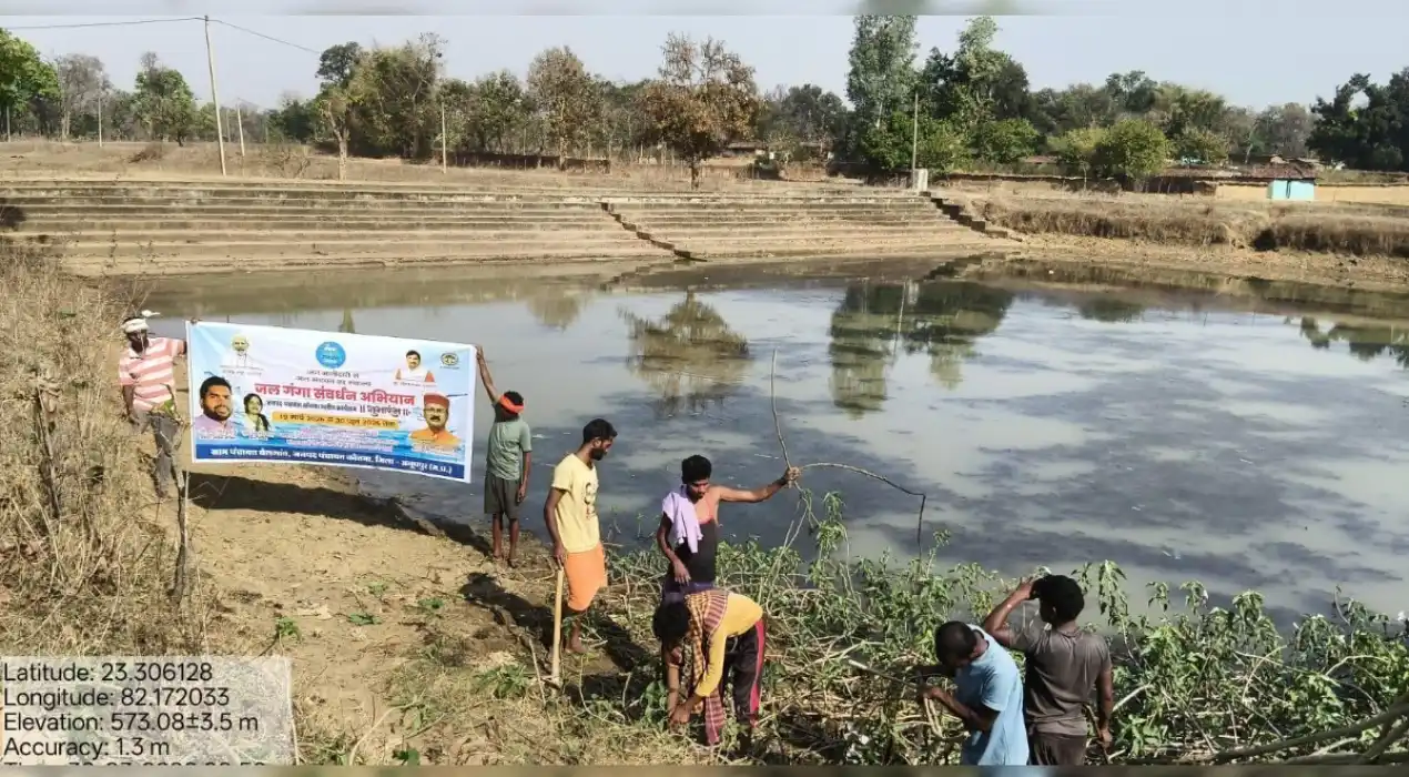 बेलगांव ग्राम पंचायत के बेल तालाब की ग्रामीणों ने श्रमदान कर की साफ- सफाई