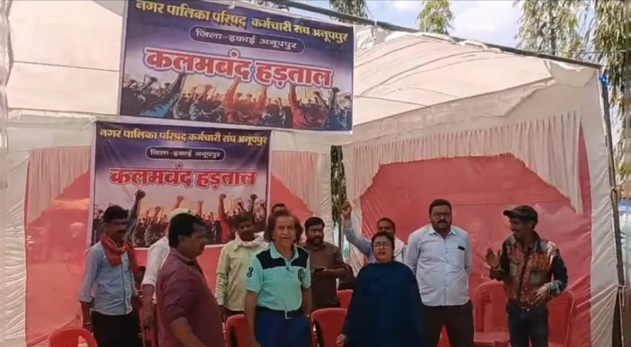 पांच महिनों से वेतन की आस लेकर धरने पर बैठे नपा कर्मचारी