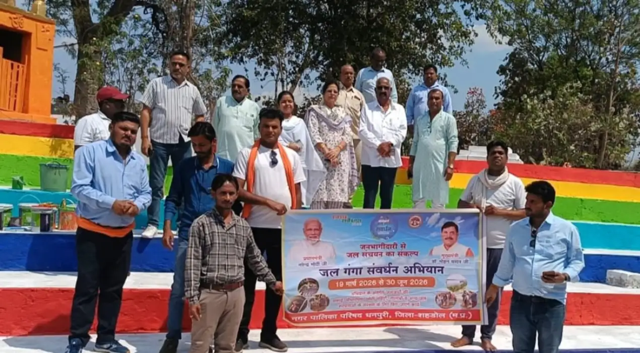 शहडोल जिले में जल गंगा संवर्धन अभियान के अंतर्गत नगर पालिका धनपुरी ने जल श्रोतों के संरक्षण एवं सौंदर्यीकरण का दिया संदेश।