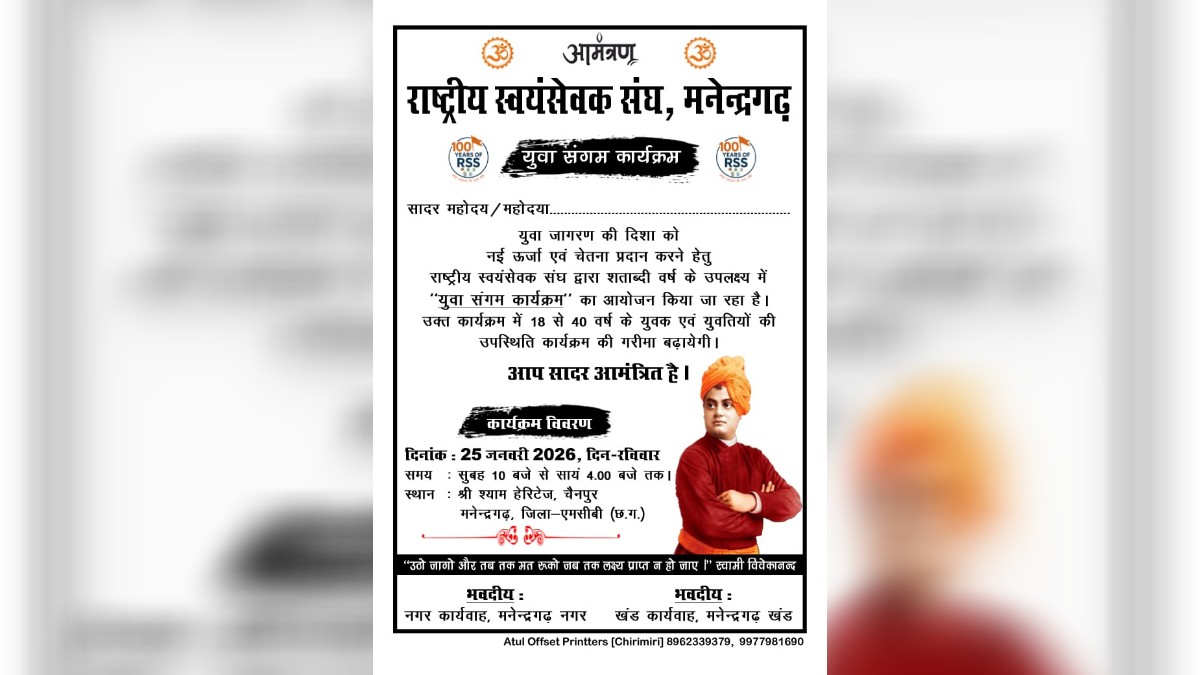 आरएसएस के शताब्दी वर्ष पर मनेन्द्रगढ़ में होगा “युवा संगम कार्यक्रम”